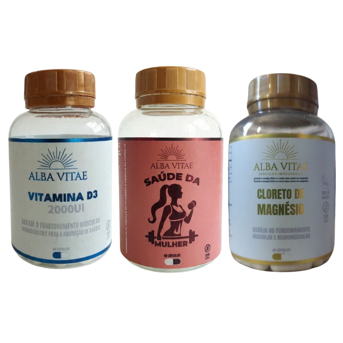 Cada kit inclui 1 frasco de 60 cápsulas de Saúde da Mulher (30 doses), 1 frasco de 60 cápsulas de Cloreto de Magnésio (30 doses) e 1 frasco de 60 cápsulas de Vitamina D3 (60 doses), todos livres de glúten e aditivos artificiais, fáceis de ingerir com água junto às refeições. A combinação oferece benefícios sinérgicos: o multivitamínico equilibra hormônios e combate a anemia comum no pós-parto, o magnésio alivia tensões e melhora o sono, e a vitamina D3 fortalece ossos e imunidade, ajudando na recuperação de perdas nutricionais da gestação. As embalagens sustentáveis da Alba Vitae refletem o compromisso com o meio ambiente, atraindo consumidoras conscientes que valorizam produtos éticos e funcionais.
